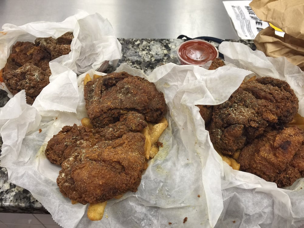 Includes 4 wings, 4 legs, 4 thighs and 4 chicken tenders. Served with fries.